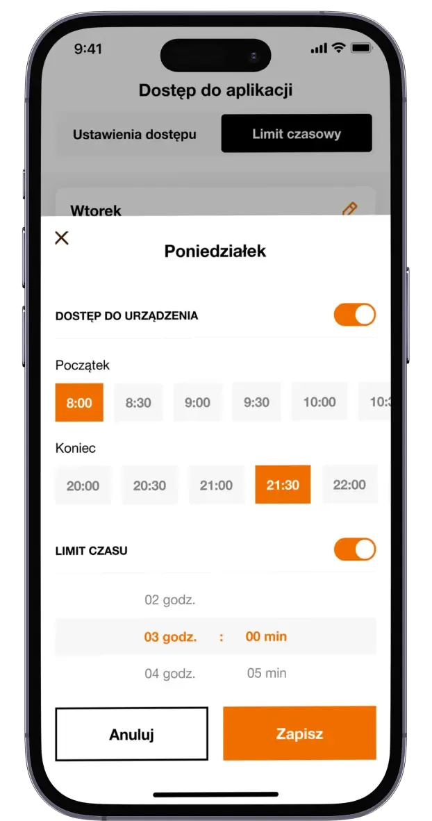 Kontrola godzin korzystania z aplikacji